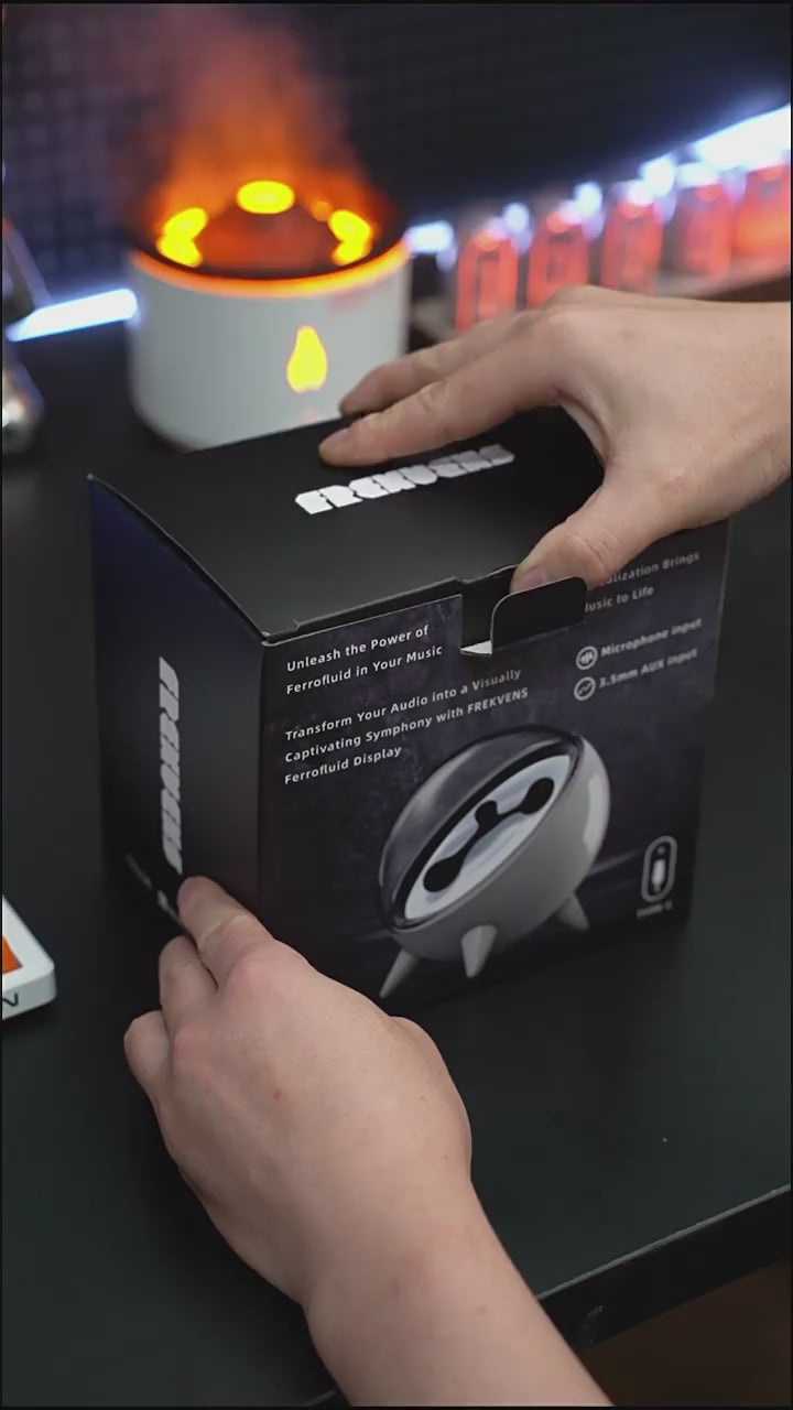 Dynamic Ferrofluid Visualization: Ferrofluid is known as the prototype substance of the Marvel movie "Venom". The ferrofluid inside the chamber reacts to the vibrations of your favorite tunes or ambient sounds. This ferrofluid sound visualizer offers an enchanting visual representation of audio frequencies, making it a standout desktop decor piece.